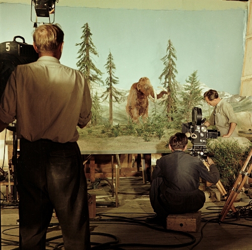 Karel Zeman s dokreslovačkou - filmovou technikou, kdy je scéna "dokreslena" a herecká akce probíhá dále od kamery. Tato technika je náročná na perspektivu, umožňuje však vytvořit efektní filmový trik, kterého Karel Zeman ve svých filmech hojně využíval.