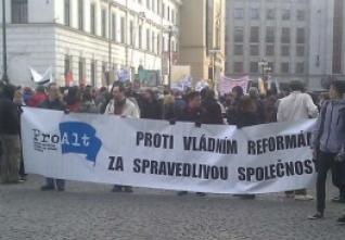 Akce začala ve 14:00 na náměstí Republiky v centru Prahy, odtud zhruba po hodině pokračoval průvod, ke kterému se postupně přidávali i další lidé, přes Staroměstské náměstí až ke Strakově akademii, kde sídlí Úřad vlády ČR. Hned na začátku se ujal slova Ondřej Lánský z pořádají iniciativy ProAlt. "118 koaličních poslanců nemá svolení obyvatel provádět reformy. V ProAltu jsme přesvědčeni, že má cenu se bránit," řekl směrem k demonstrantům s tím, že vládní reformy citelně sníží životní úroveň většiny obyvatelstva. Vystoupil také šéf ČMKOS Jaroslav Zavadil, který upozornil na odborářskou akci "Otevřete oči", kterou chtějí občany upozornit na lži vlády ohledně nutnosti zvyšovat DPH kvůli penzijní reformě.